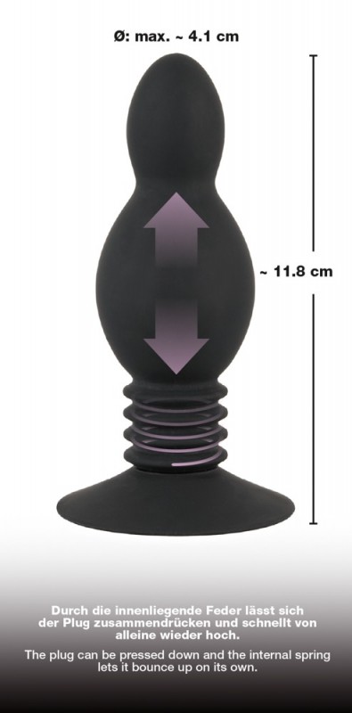 Комментарий: Удовольствие более ощутимое чем от простой пробки. От пружинки сильнее проникновение и чувственнее, а присоска дает возможность не ограничиваться в выборе имитирования тех позиций, которые на ум приходят.