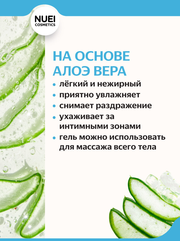 Гель содержит в своем составе алоэ вера, которое оказывает смягчающее и успокаивающее действие на интимные зоны